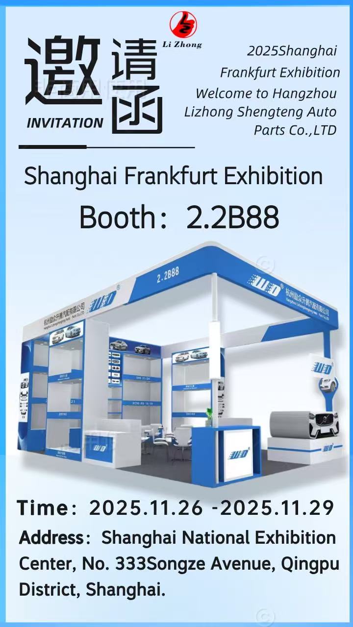 Hangzhou Lizhong Shengteng Automotive Parts Co., Ltd. sangat antusias untuk bergabung dengan Pameran Shanghai Frankfurt 2025 pada tanggal 26-29 November di Pusat Pameran Nasional Shanghai (Booth 2.2B88). Kami akan memamerkan suku cadang mobil kami yang berkualitas tinggi dan andal kepada OEM global dan mitra purnajual.